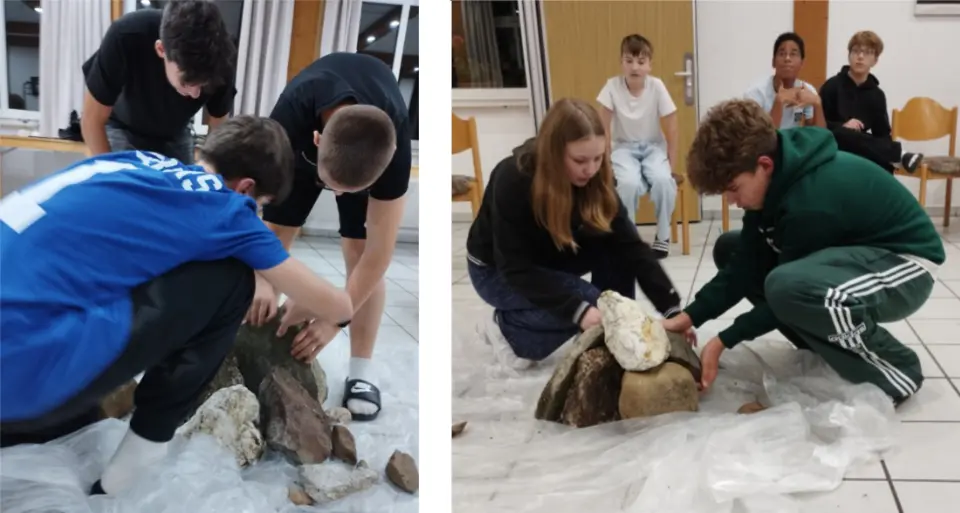Erster Abend beim Konfiseminar in Bad Kreuznach: In einem Standbild zeigen kleine Gruppen von Konfis, wie Gott vielleicht ist, wie sie Gott sehen: